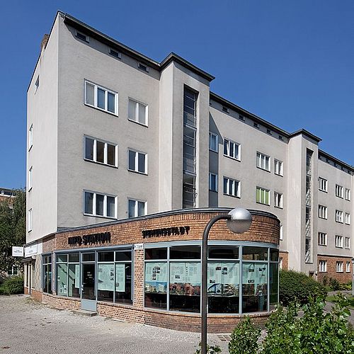 The Hermann Beims Estate in Magdeburg (1925–29) is considered an exemplary social housing development. Based on plans by Bruno Taut, inexpensive and thoughtfully designed flats were built in the style of the New Architecture. Today, the housing estate is a protected heritage area.