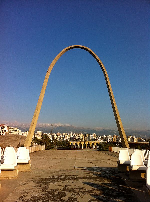 One impressive example of the deliberately imported work of non-Arab artists is the trade fair centre designed by Oscar Niemeyer in the northern Lebanese city of Tripoli. The project, which was never completed due to the outbreak of civil war in 1975, comprises around 10,000 hectares, including a monumental circular arch, the shell construction of an international and a Lebanese pavilion, an experimental theatre and a museum for communal living. In early July 2019, Imad Aoun and Nadim Younes from Beirut were announced as the winners of a competition to revive the unfinished trade fair centre, integrating the existing structures, which may by then enjoy UNESCO protection, to produce a “Centre de connaissances et d’innovation”.