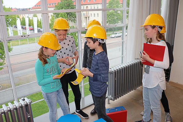 In teams of experts, children from Ziebigk Elementary School investigated and considered a tour for school pupils according to self-selected questions. The children's suggestions were the basis for a re-conception of a hand-on tour for children, whereby they solve assignments independently at several stages in the Bauhaus Building. Test runs with different age groups at the school provided information about any need for changes to the tour's fine planning. Now, the children explore, in teams competing with one another, various points in the famous Bauhaus Building. Activity sheets with action-oriented research assignments invite them to try things out, deliberate, and solve puzzles. Since January 2019 the tour has been part of the regular outreach programme of the Bauhaus Dessau Foundation.